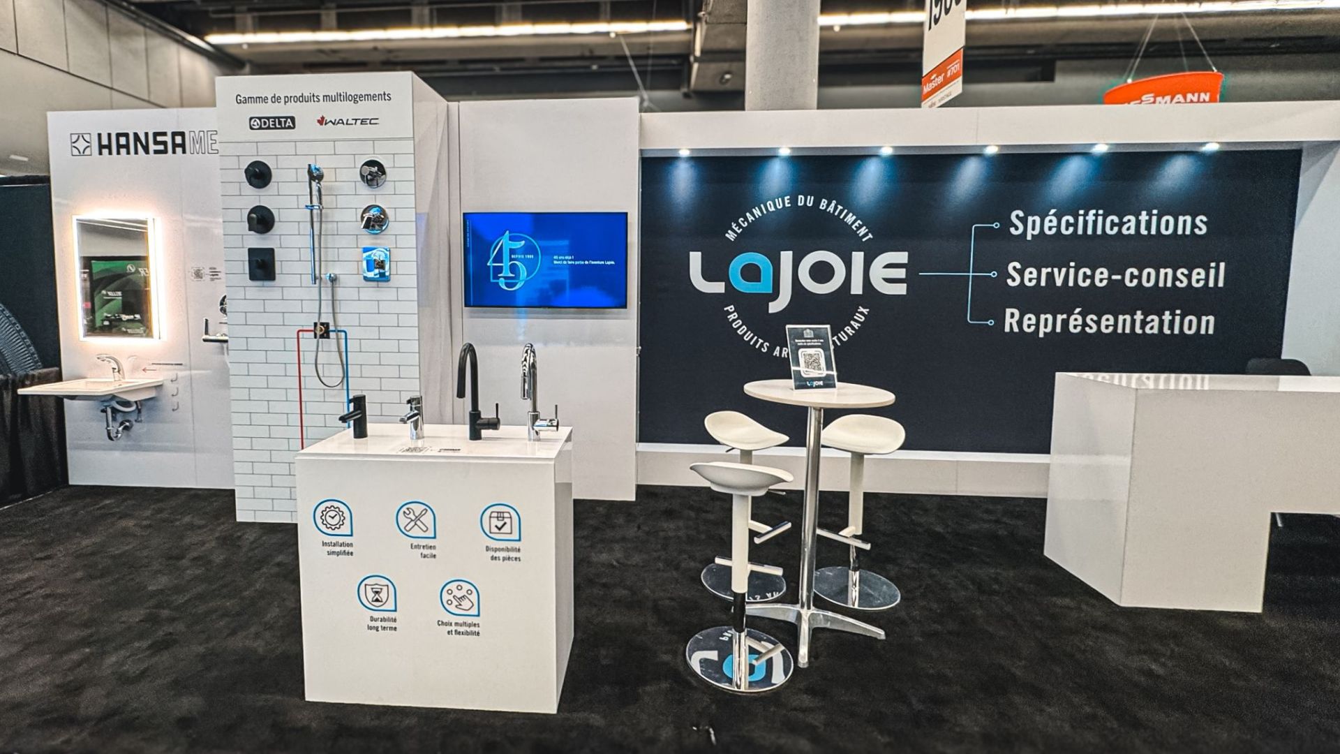 Basé sur notre modèle modulaire 10×20 Chic Booth et agrémenté d’éléments propres à Lajoie, chaque aménagement est adapté à l’évolution de leurs besoins.