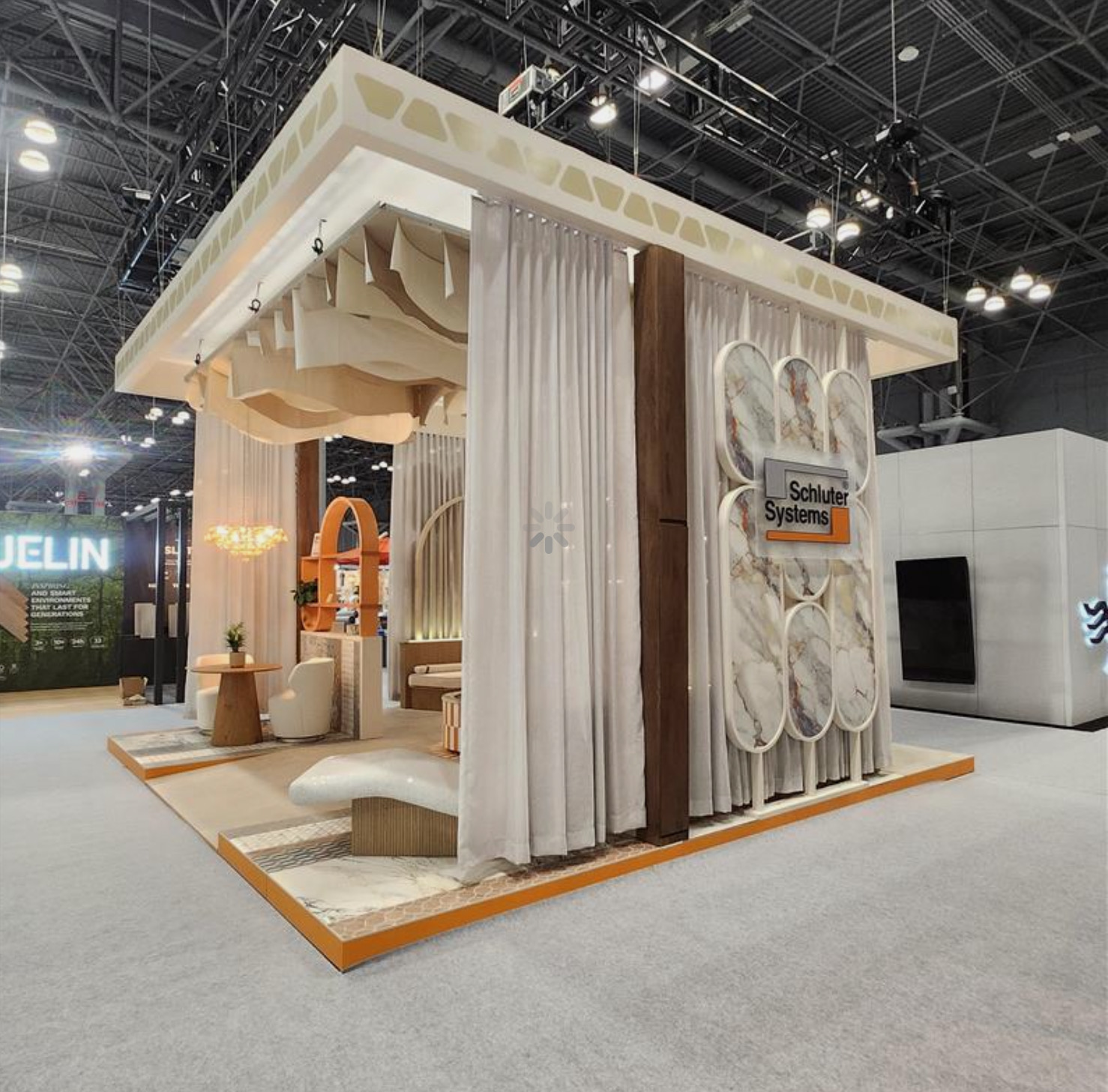 Pour BDNY 2025, Schluter a fait un pari audacieux en délaissant son emblématique kiosque orange pour un espace architectural épuré de 20×20. Leur objectif : susciter la curiosité et réengager un public qui les connaissait déjà très bien. Archex a construit la structure sur mesure, coordonné l’ensemble des fournisseurs à travers l’Amérique du Nord et géré l’installation afin que chaque élément du design s’intègre parfaitement. Le résultat : un kiosque sophistiqué et percutant qui a attiré une attention exceptionnelle et remporté le prix Best in Show.