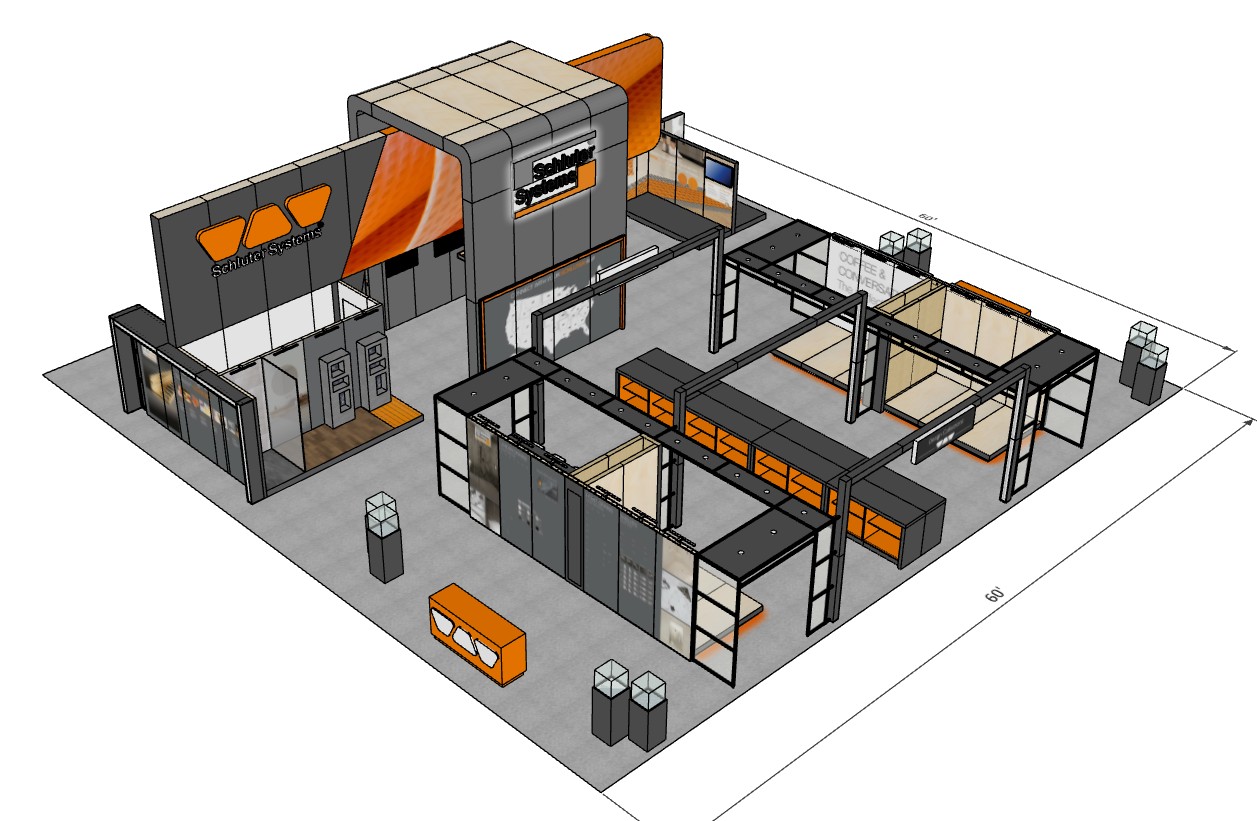 Schluter est un véritable expert des salons professionnels, avec une présence marquée à travers un calendrier chargé en Amérique du Nord. Leur kiosque personnalisé 60×60 a été conçu pour offrir une image de marque forte et reconnaissable, tout en soutenant les lancements de produits, les démonstrations en direct et des interactions significatives avec les visiteurs.